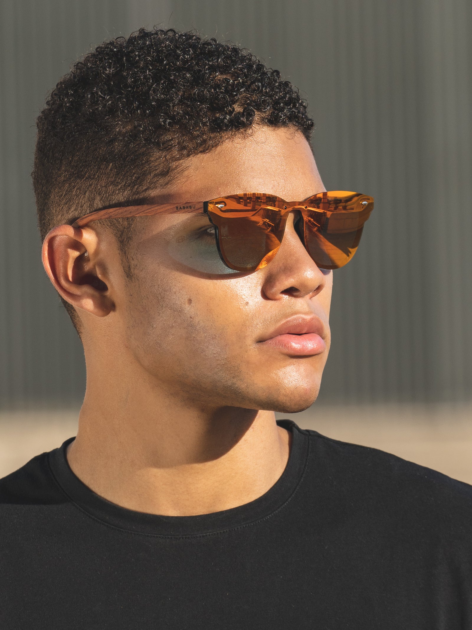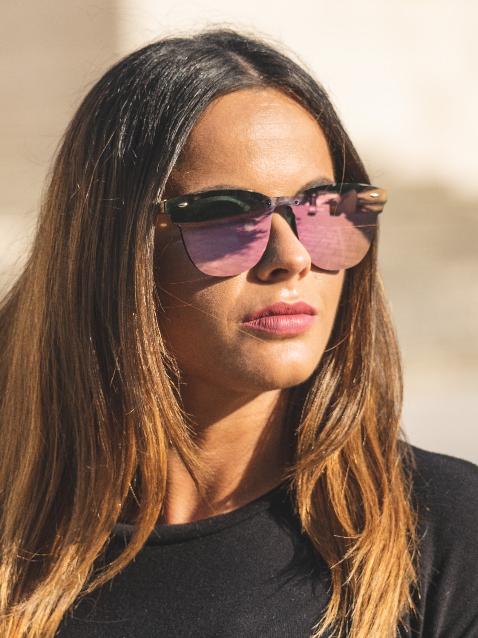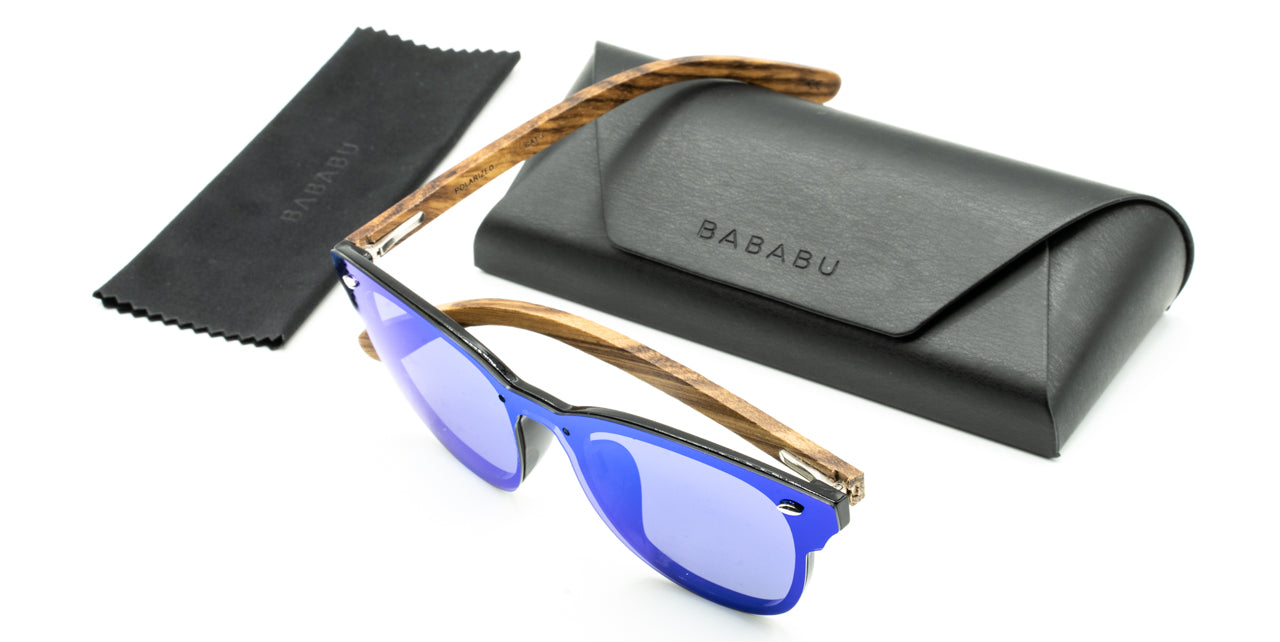 Montura que refleja tu estilo propio, destaca por su lente completa espejadas de color azul polarizada con originales varillas de madera de ébano y pequeños embellecedores en metal.